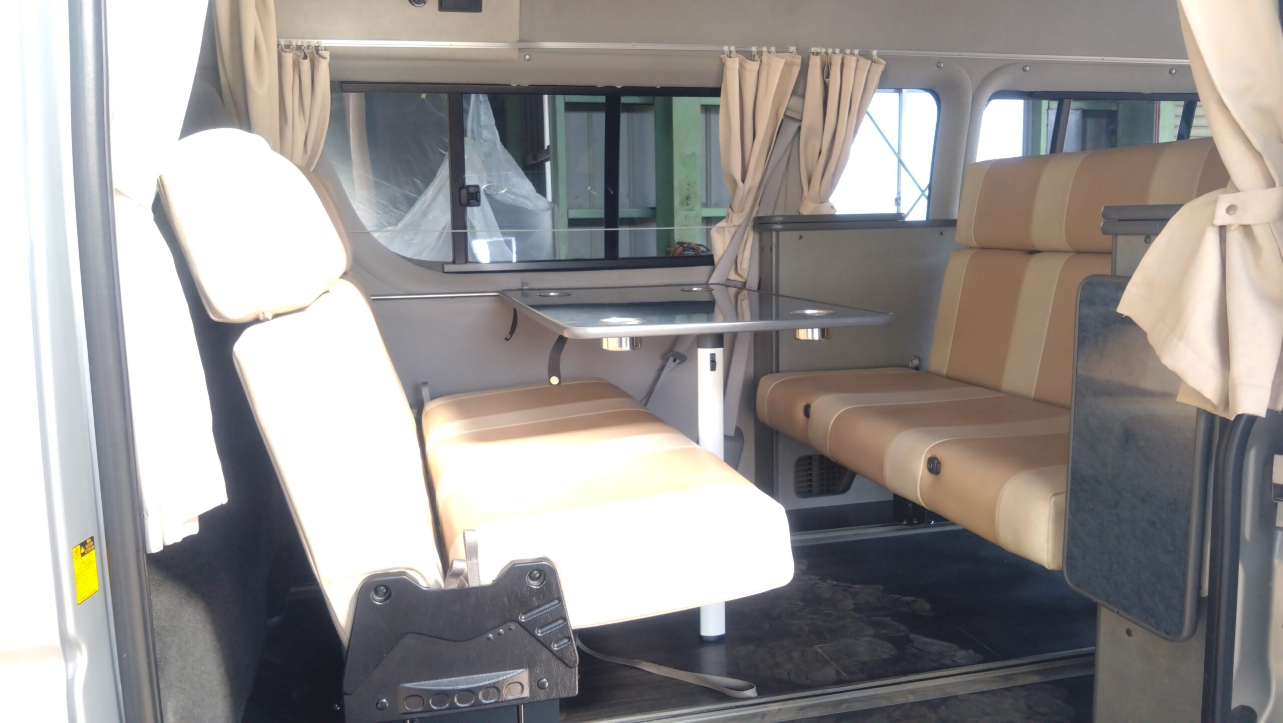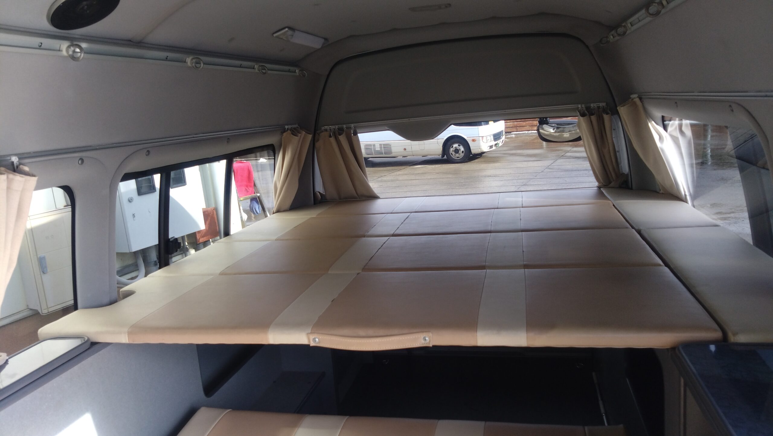 | ベッド寸法 | バンクベッド 幅 185㎝ 奥行 160㎝ テーブル席 幅 93㎝ 長さ 185㎝ 後方2段ベッド 幅 72㎝ 長さ 190㎝ |